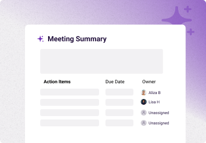 Stop losing valuable insights and action items in unstructured meetings; automatically capture key outcomes so managers can lead the conversation and teams leave every session aligned and ready for action.