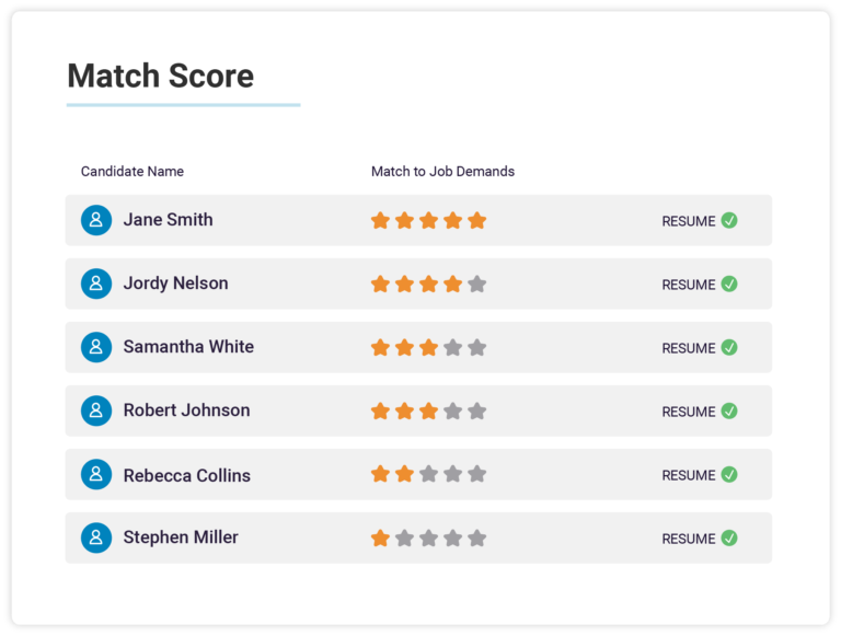 Candidates complete a quick, 50 question cognitive assessment. Their score shows how effectively a candidate can think through problems, absorb new information, and manage the mental complexity required by the role—key drivers of on-the-job success.