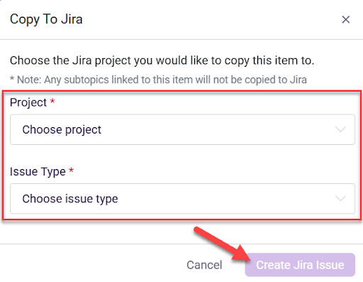 - Project board selection: Choose the exact Jira project and issue type to route work where it belongs.