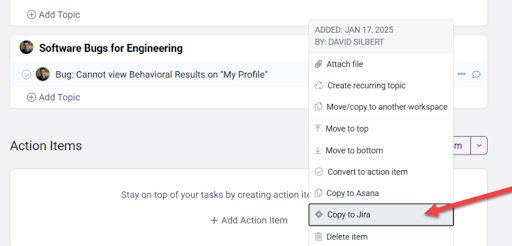 - Create Jira issues: Turn Perform action items or agenda topics into Jira tasks with just a few clicks.