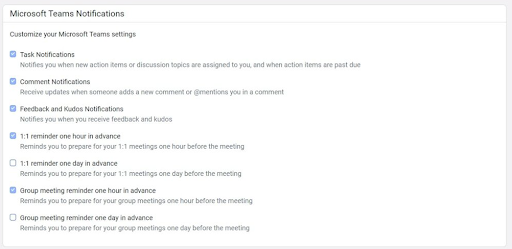 Reduce mental load and keep your team’s momentum high. With customizable notifications for feedback, kudos, and important updates, you’ll always have the right information at your fingertips, making it easier to collaborate and turn discussions into tangible results.