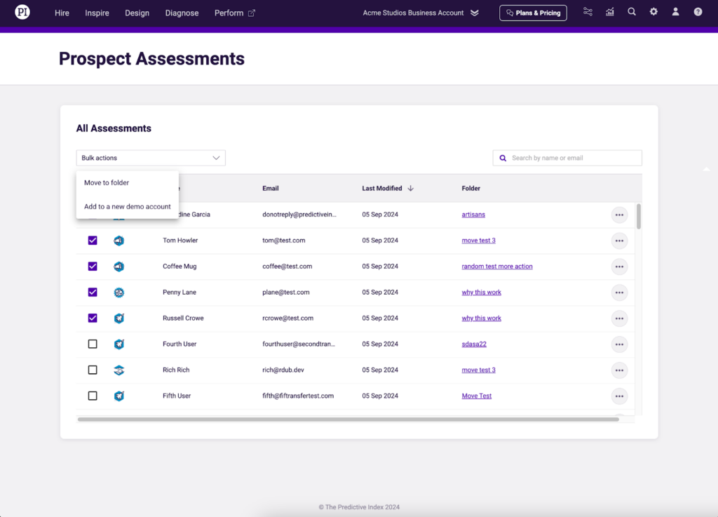 - Outbound emails are disabled for demo accounts. This prevents sending assessments and user invitations.