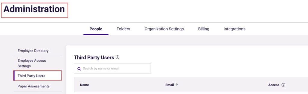 Step 1: From your PI2 Seller Account, navigate to Administration and select Third-Party Users. Locate and copy the email address of the third-party user you want to add. (Note: Only users within your PI2 Seller Account can be added.)