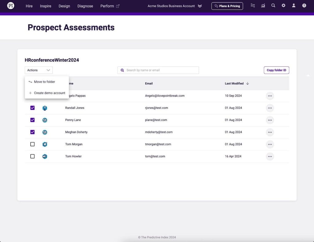 To set up a customized demo experience using your prospect’s data, find the Behavioral Assessments you’d like to include by navigating to the Seller Tools peek panel and either: