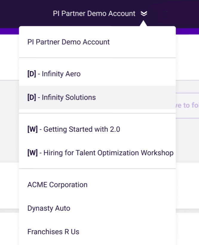 To access the prospect demo account again in the future, you can find the account in your account drop-down.