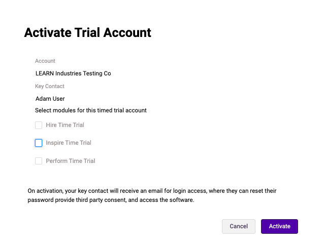 The Key Contact associated with the account will be emailed login instructions. You will automatically be enabled as a third party user (the prospect email will contain language confirming they’re granting you access), and you’ll be able to see the trial account in your software drop down.