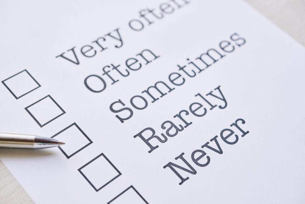 - If your question asks “How often…?” use a Frequency Scale: Never, Rarely, Sometimes, Often, Always.