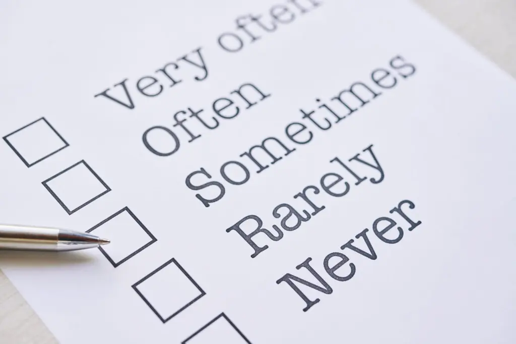 - If your question asks “How often…?” use a Frequency Scale: Never, Rarely, Sometimes, Often, Always.